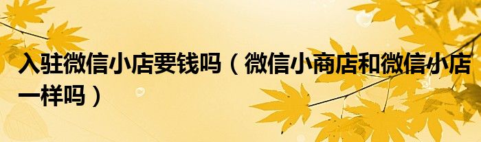 入驻微信小店要钱吗(微信小商店和微信小店一样吗)