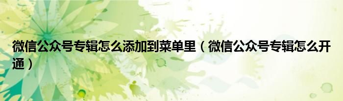微信公众号专辑怎么添加到菜单里(微信公众号专辑怎么开通)