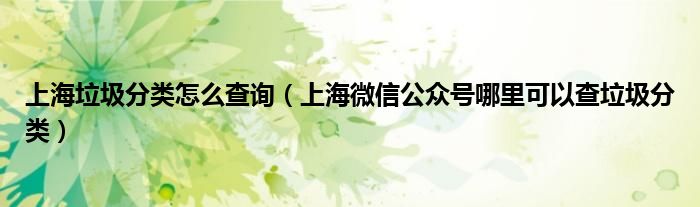 上海垃圾分类怎么查询(上海微信公众号哪里可以查垃圾分类)