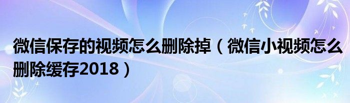 微信保存的视频怎么删除掉(微信小视频怎么删除缓存2018)