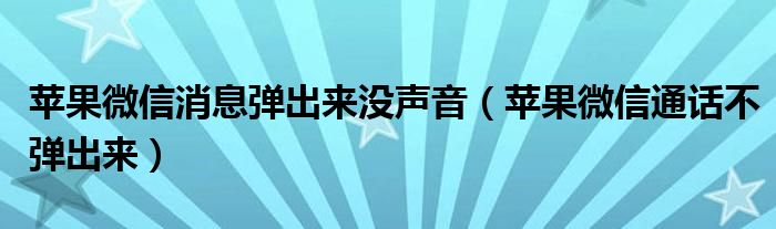 苹果微信消息弹出来没声音(苹果微信通话不弹出来)