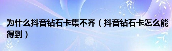 导读 大家好,小跳为你解答以上问题。为什么抖音钻石卡集不齐,抖音钻石卡怎么能得到这个问题很多人还不知道,现在让我们一起来看看吧!