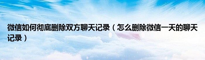 微信如何彻底删除双方聊天记录(怎么删除微信一天的聊天记录)