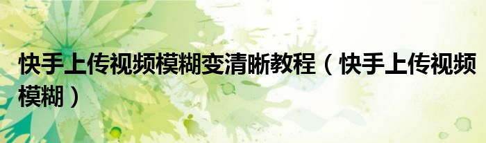 快手上传视频模糊变清晰教程(快手上传视频模糊)
