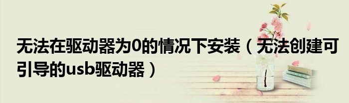 导读 大家好,小跳为你解答以上问题。无法在驱动器为0的情况下安装,无法创建可引导的usb驱动器这个问题很多人还不知道,现在让我们一起来看看吧
