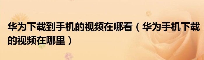 华为下载到手机的视频在哪看(华为手机下载的视频在哪里)
