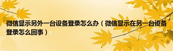 微信显示另外一台设备登录怎么办(微信显示在另一台设备登录怎么回事)