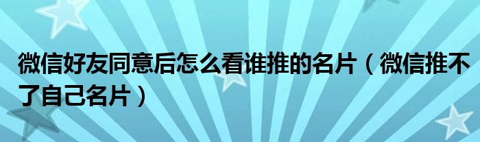 导读 大家好,小跳为你解答以上问题。微信好友同意后怎么看谁推的名片,微信推不了自己名片这个问题很多人还不知道,现在让我们一起来看看吧!