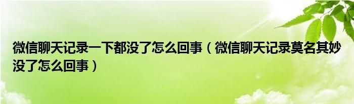 导读 大家好,小跳为你解答以上问题。微信聊天记录一下都没了怎么回事,微信聊天记录莫名其妙没了怎么回事这个问题很多人还不知道,现在让我们一