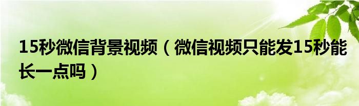 15秒微信背景视频(微信视频只能发15秒能长一点吗)