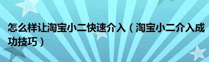 怎么样让淘宝小二快速介入(淘宝小二介入成功技巧)