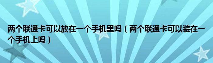 两个联通卡可以放在一个手机里吗(两个联通卡可以装在一个手机上吗)