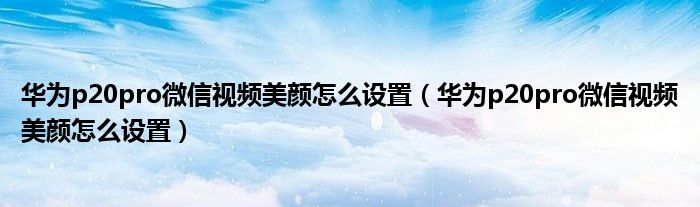 华为p20pro微信视频美颜怎么设置(华为p20pro微信视频美颜怎么设置)