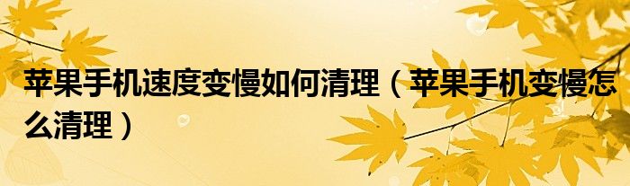 苹果手机速度变慢如何清理(苹果手机变慢怎么清理)