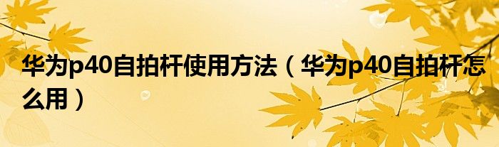 华为p40自拍杆使用方法(华为p40自拍杆怎么用)