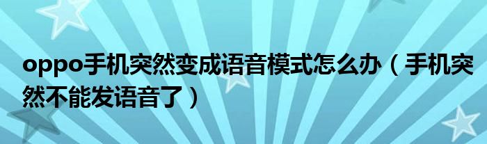 导读 大家好,小跳为你解答以上问题。oppo手机突然变成语音模式怎么办,手机突然不能发语音了这个问题很多人还不知道,现在让我们一起来看看吧!