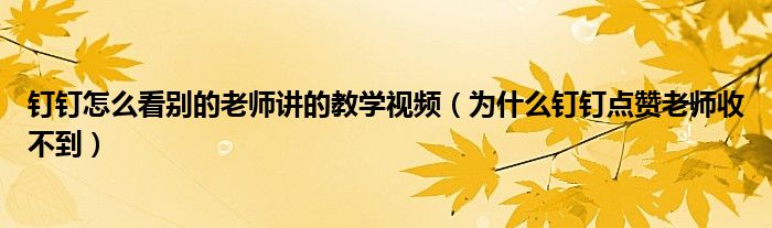 导读 大家好,小跳为你解答以上问题。钉钉怎么看别的老师讲的教学视频,为什么钉钉点赞老师收不到这个问题很多人还不知道,现在让我们一起来看看