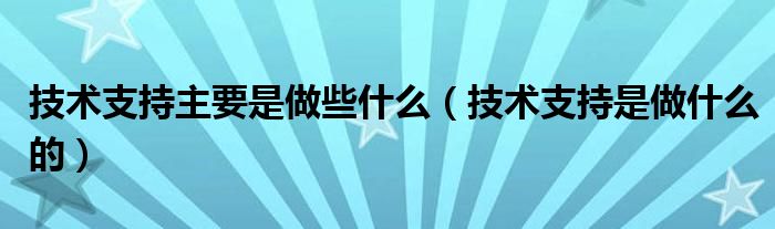导读 大家好,小跳为你解答以上问题。技术支持主要是做些什么,技术支持是做什么的这个问题很多人还不知道,现在让我们一起来看看吧!