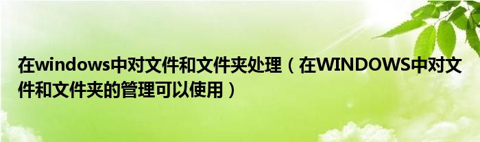 导读 大家好,小跳为你解答以上问题。在windows中对文件和文件夹处理,在WINDOWS中对文件和文件夹的管理可以使用这个问题很多人还不知道,现在让