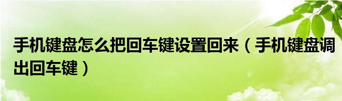 手机键盘怎么把回车键设置回来(手机键盘调出回车键)