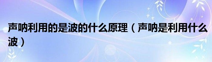 声呐利用的是波的什么原理(声呐是利用什么波)