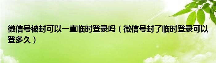 微信号被封可以一直临时登录吗(微信号封了临时登录可以登多久)