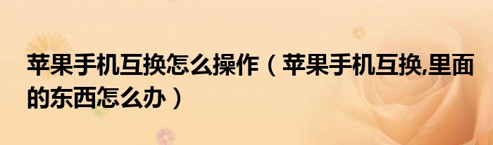 导读 大家好,小跳为你解答以上问题。苹果手机互换怎么操作,苹果手机互换,里面的东西怎么办这个问题很多人还不知道,现在让我们一起来看看吧!