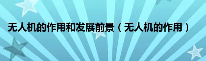 无人机的作用和发展前景(无人机的作用)