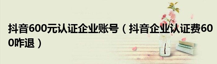 抖音600元认证企业账号(抖音企业认证费600咋退)