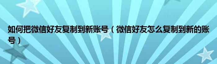 如何把微信好友复制到新账号(微信好友怎么复制到新的账号)
