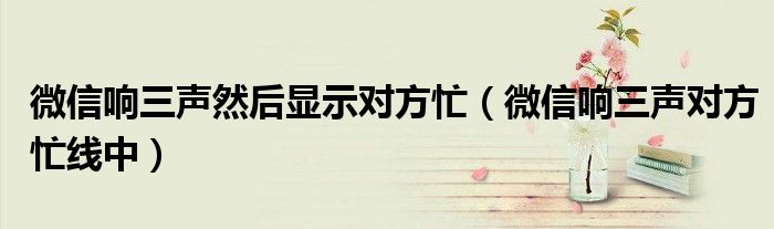 导读 大家好,小跳为你解答以上问题。微信响三声然后显示对方忙,微信响三声对方忙线中这个问题很多人还不知道,现在让我们一起来看看吧!