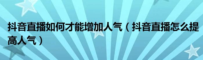 抖音直播如何才能增加人气(抖音直播怎么提高人气)