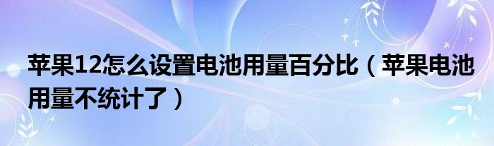 苹果12怎么设置电池用量百分比(苹果电池用量不统计了)