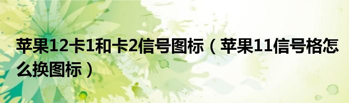 导读 大家好,小跳为你解答以上问题。苹果12卡1和卡2信号图标,苹果11信号格怎么换图标这个问题很多人还不知道,现在让我们一起来看看吧!