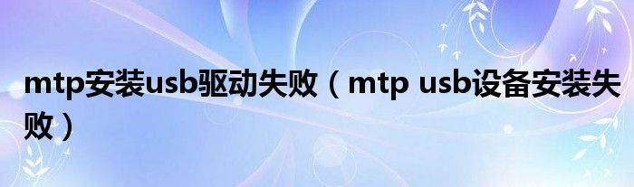导读 大家好,小跳为你解答以上问题。mtp安装usb驱动失败,mtp usb设备安装失败这个问题很多人还不知道,现在让我们一起来看看吧!