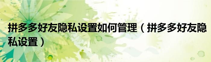导读 大家好,小跳为你解答以上问题。拼多多好友隐私设置如何管理,拼多多好友隐私设置这个问题很多人还不知道,现在让我们一起来看看吧!