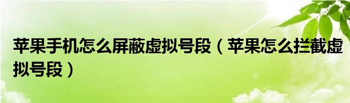 苹果手机怎么屏蔽虚拟号段(苹果怎么拦截虚拟号段)