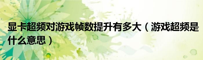 导读 大家好,小跳为你解答以上问题。显卡超频对游戏帧数提升有多大,游戏超频是什么意思这个问题很多人还不知道,现在让我们一起来看看吧!