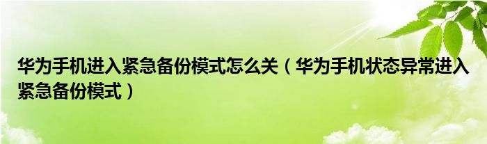 导读 大家好,小跳为你解答以上问题。华为手机进入紧急备份模式怎么关,华为手机状态异常进入紧急备份模式这个问题很多人还不知道,现在让我们一