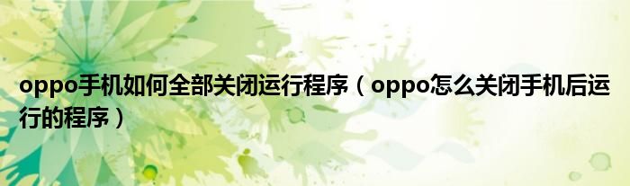 导读 大家好,小跳为你解答以上问题。oppo手机如何全部关闭运行程序,oppo怎么关闭手机后运行的程序这个问题很多人还不知道,现在让我们一起来看
