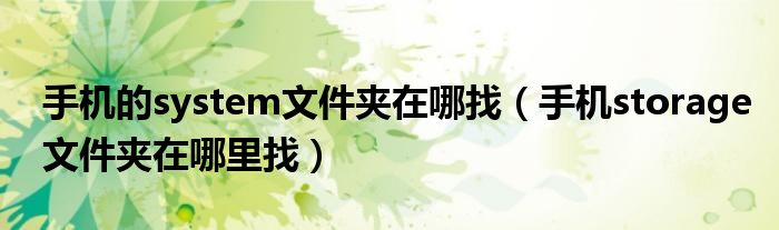 导读 大家好,小跳为你解答以上问题。手机的system文件夹在哪找,手机storage文件夹在哪里找这个问题很多人还不知道,现在让我们一起来看看吧!