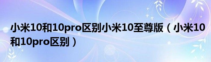 小米10和10pro区别小米10至尊版(小米10和10pro区别)