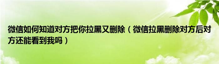 导读 大家好,小跳为你解答以上问题。微信如何知道对方把你拉黑又删除,微信拉黑删除对方后对方还能看到我吗这个问题很多人还不知道,现在让我们