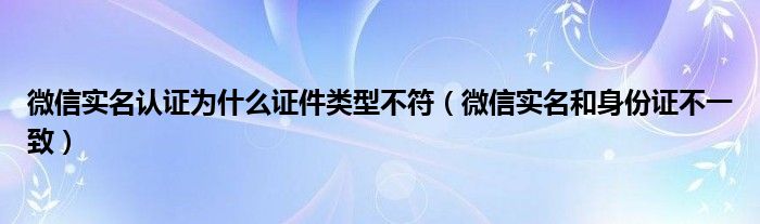 导读 大家好,小跳为你解答以上问题。微信实名认证为什么证件类型不符,微信实名和身份证不一致这个问题很多人还不知道,现在让我们一起来看看吧