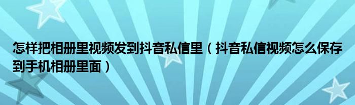 怎样把相册里视频发到抖音私信里(抖音私信视频怎么保存到手机相册里面)