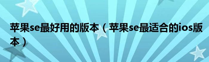 导读 大家好,小跳为你解答以上问题。苹果se最好用的版本,苹果se最适合的ios版本这个问题很多人还不知道,现在让我们一起来看看吧!