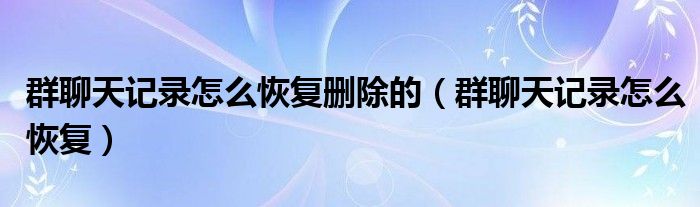 群聊天记录怎么恢复删除的(群聊天记录怎么恢复)