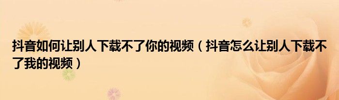 抖音如何让别人下载不了你的视频(抖音怎么让别人下载不了我的视频)