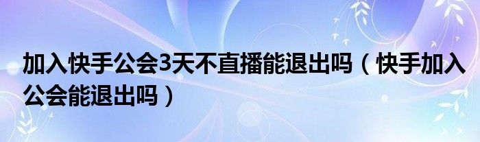 加入快手公会3天不直播能退出吗(快手加入公会能退出吗)