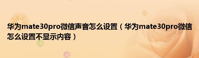 华为mate30pro微信声音怎么设置(华为mate30pro微信怎么设置不显示内容)